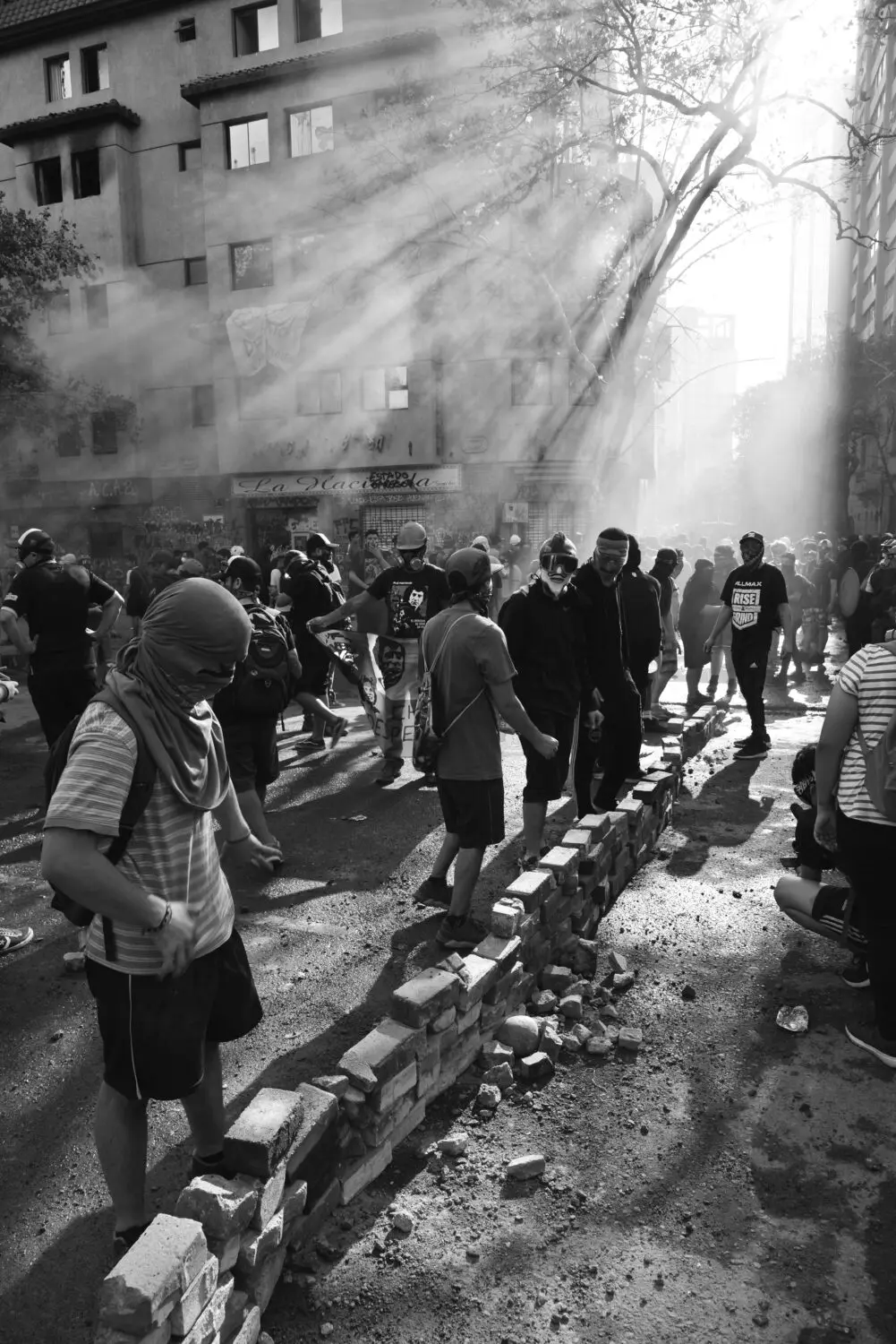 Es posible sí constatar el apoyo y entusiasmo entre los partidarios del estallido con esos grupos que se denominaron “la primera línea”, los cuales surgieron en diferentes puntos y actuaban en forma violenta, generando barricadas efímeras, simbólicas y estratégicas, que en el caso de la Plaza de la Dignidad la policía teniendo todos los medios para neutralizarla, parecía más bien preservarla en una zona que quedó devastada.