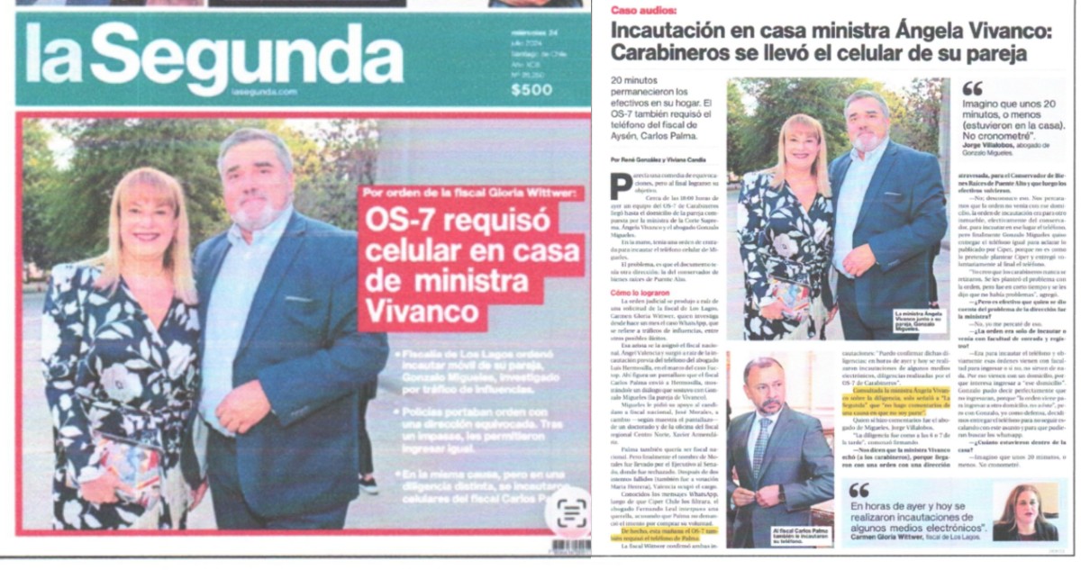 Dos días después del operativo, la incautación del celular de Migueles fue portada del diario La Segunda. “Carabineros se llevó el celular”, era parte del título de la publicación del vespertino que hoy forma parte del expediente judicial.